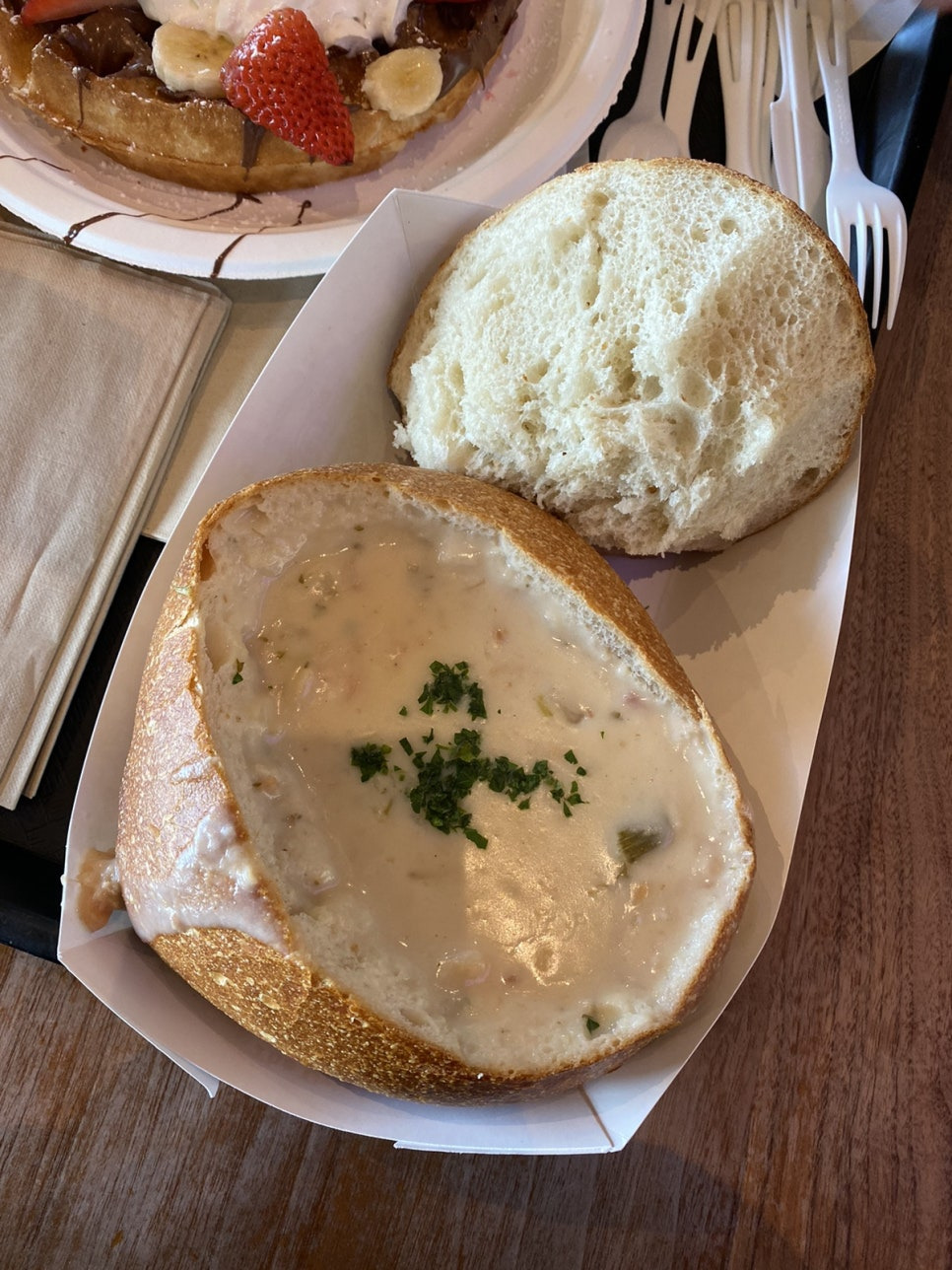 요기서 Crab Chowder을 아주 유명한 보딘 카페에서 먹습니다 (Boudin Backery)