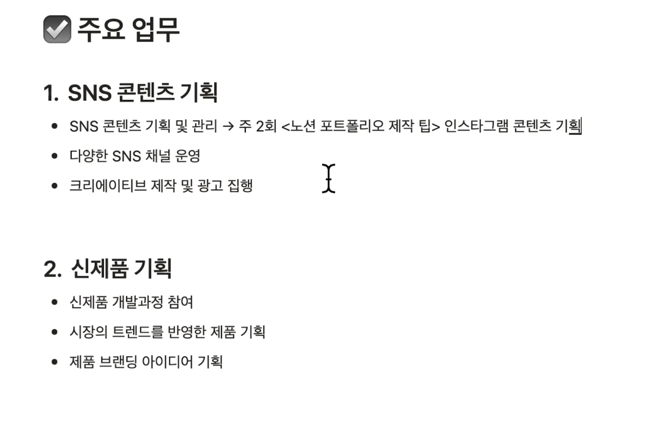 담당업무는 한 문장으로 정리하기!!!!!